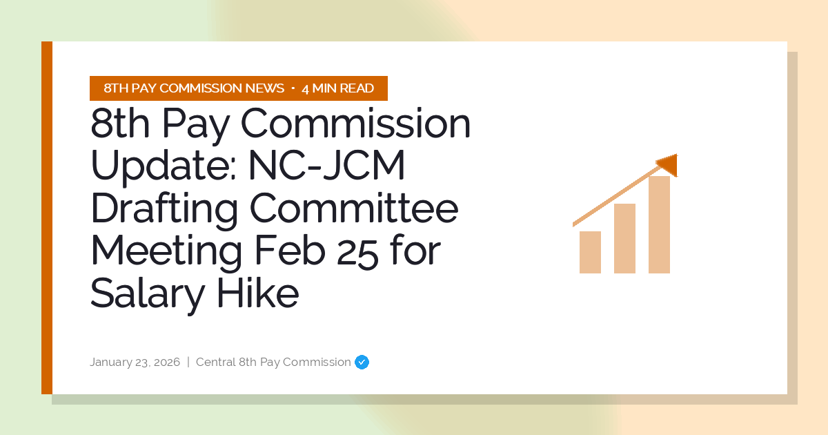 In a massive development for 48 lakh central government employees and 68 lakh pensioners, the roadmap for the 8th Pay Commission has officially begun. The National Council (Staff Side) of the Joint Consultative Machinery (JCM) has scheduled a high-level meeting in New Delhi on February 25, 2026 to finalize the “Common Charter of Demands”.
