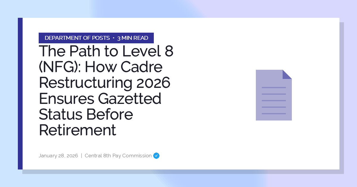 The Comprehensive Report on Cadre Restructuring 2026 is not just about ratios; it is a “Dignity Restoration” plan. Its ultimate goal is to push you into Level 8 (HSG-I NFG) before you hang up your boots.