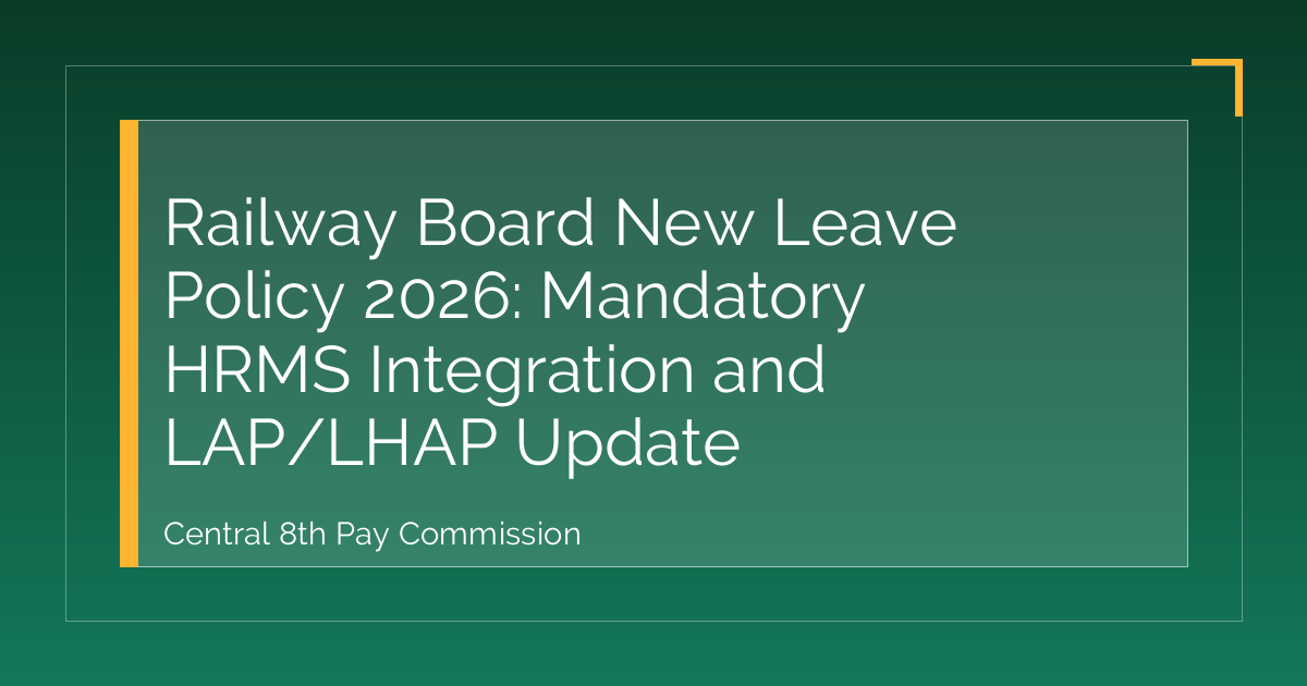 NEW DELHI: The Railway Board has officially transitioned to a fully digitized leave management ecosystem for the 2026 calendar year. In a move to eliminate manual discrepancies and sync with the 8th Pay Commission’s administrative reforms, all railway zones have been directed to process Leave on Average Pay (LAP) and Leave on Half Average Pay (LHAP) exclusively through the Aadhaar-authenticated HRMS portal.